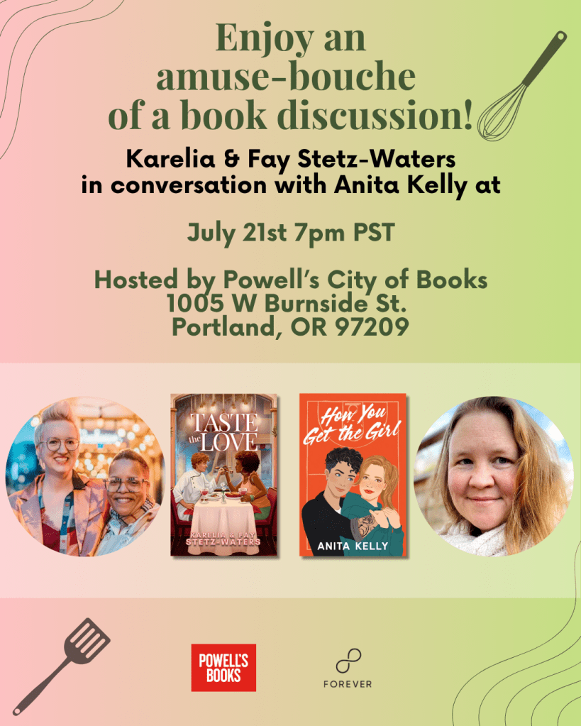 - Monday, July 21st, 2025, at 7 PM: In conversation with Karelia & Fay Stetz-Waters in celebration of their newest, Taste the Love, at Powell’s Burnside; Portland, OR